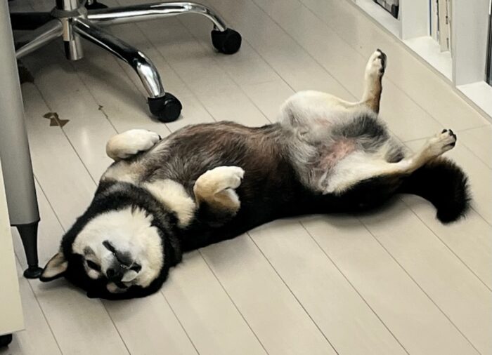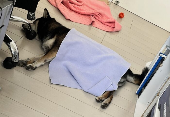 柴八君は朝から事務所で涼んでもらってます(*^-^*)