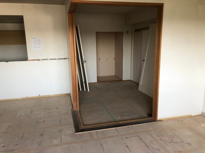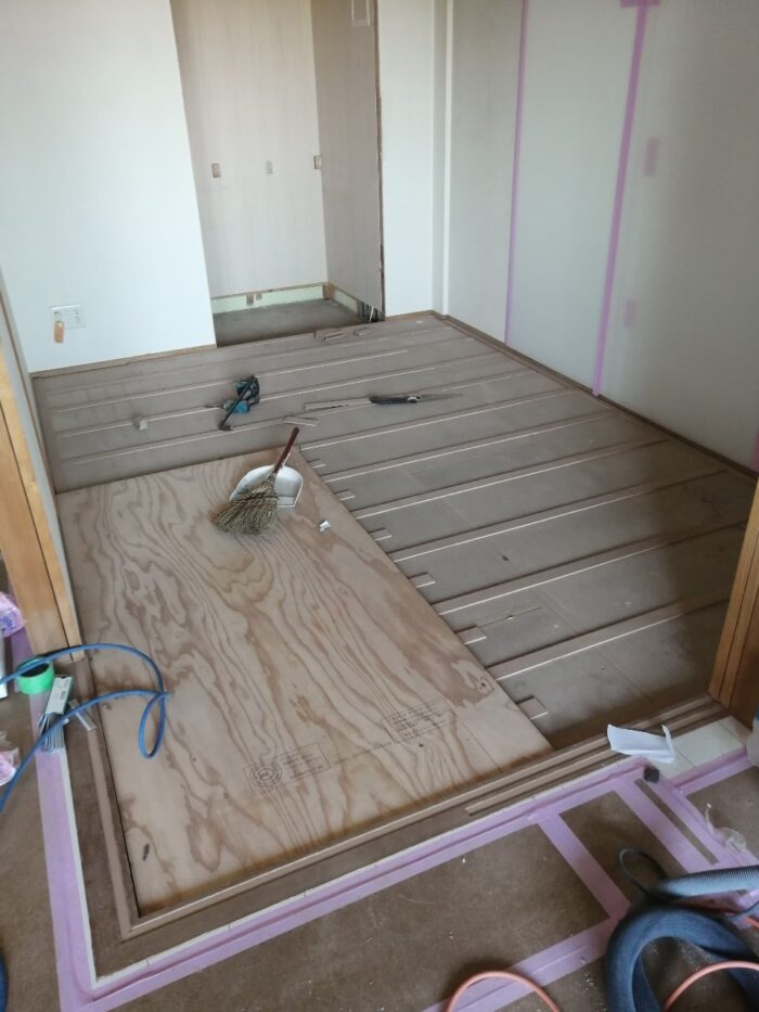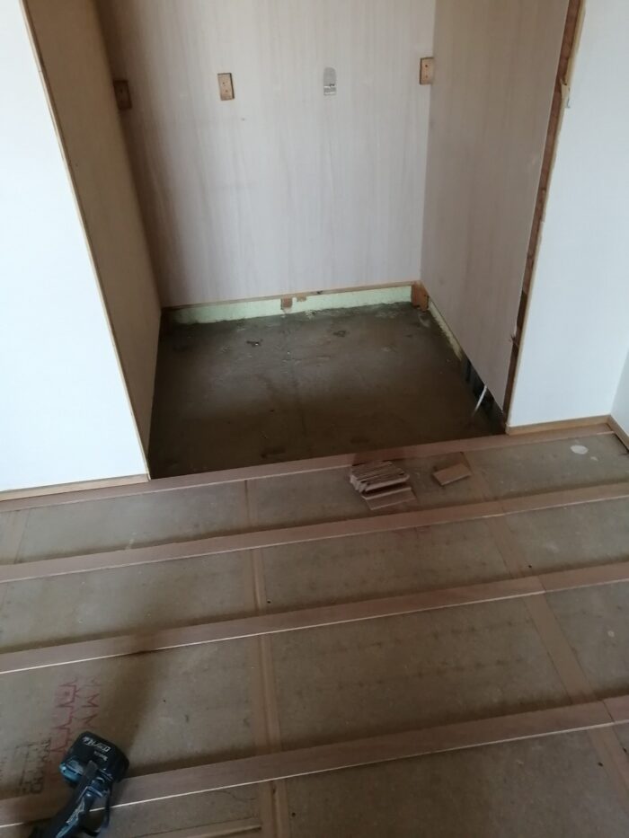 床の嵩上げ(床の高さを上げ、段差をなくす)工事をしています。